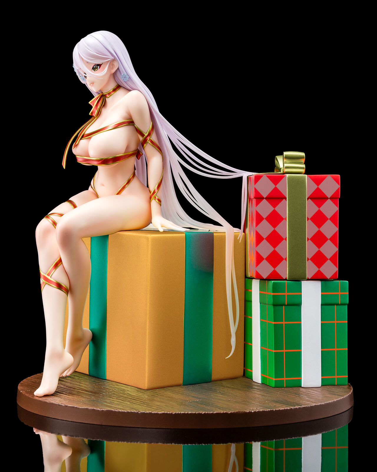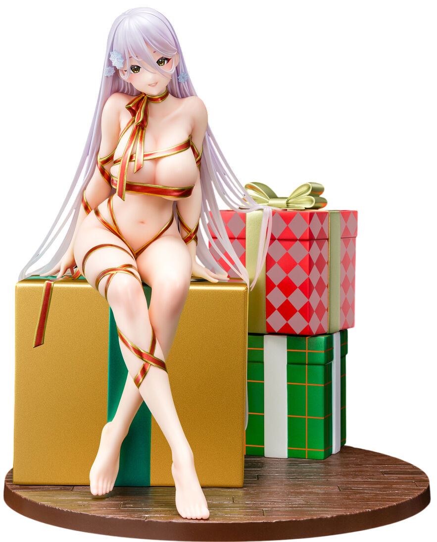 This time we have turned Mariya, a character drawn by Masami-sensei, into a figure. According to Sensei, "Mariya is a present spirit who visits good kids on Christmas Eve after everyone’s asleep. I couldn’t decide whether I liked the ribbon digging into her skin or the loose, gappy look, so I just went with both!" We’ve recreated every detail in full digital 3D, Mariya’s slender yet curvy body, the way the ribbons wrap around her, the huge present box she sits on or floats behind her, and even her shiny, semi-transparent silver hair.