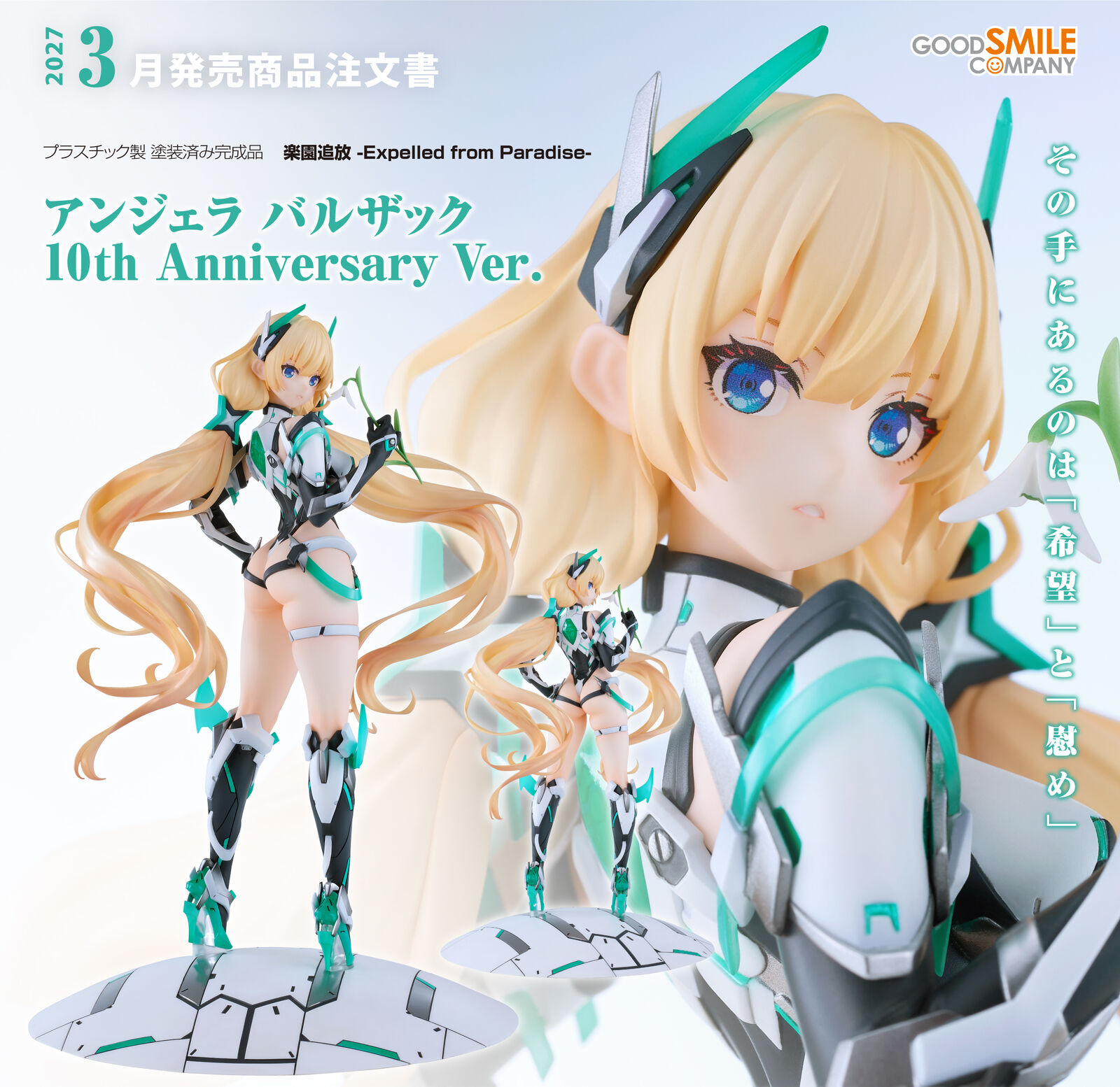 From "Expelled from Paradise" comes a 1/7 scale figure of the DEVA Central Security agent Angela Balzac! To commemorate the 10th anniversary of the work's release, character and mecha designer Masatsugu Saito's illustration has been meticulously rendered in figure form, right down to the finest details. Featuring a captivating physique that suggests a pleasing softness and a suit that incorporates numerous translucent parts for an authentic texture, this figure of Angela offers plenty to admire from every angle.