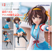 To celebrate the 20th anniversary of the TV anime series "The Melancholy of Haruhi Suzumiya," Haruhi Suzumiya has been turned into a figure clad in her iconic school uniform!