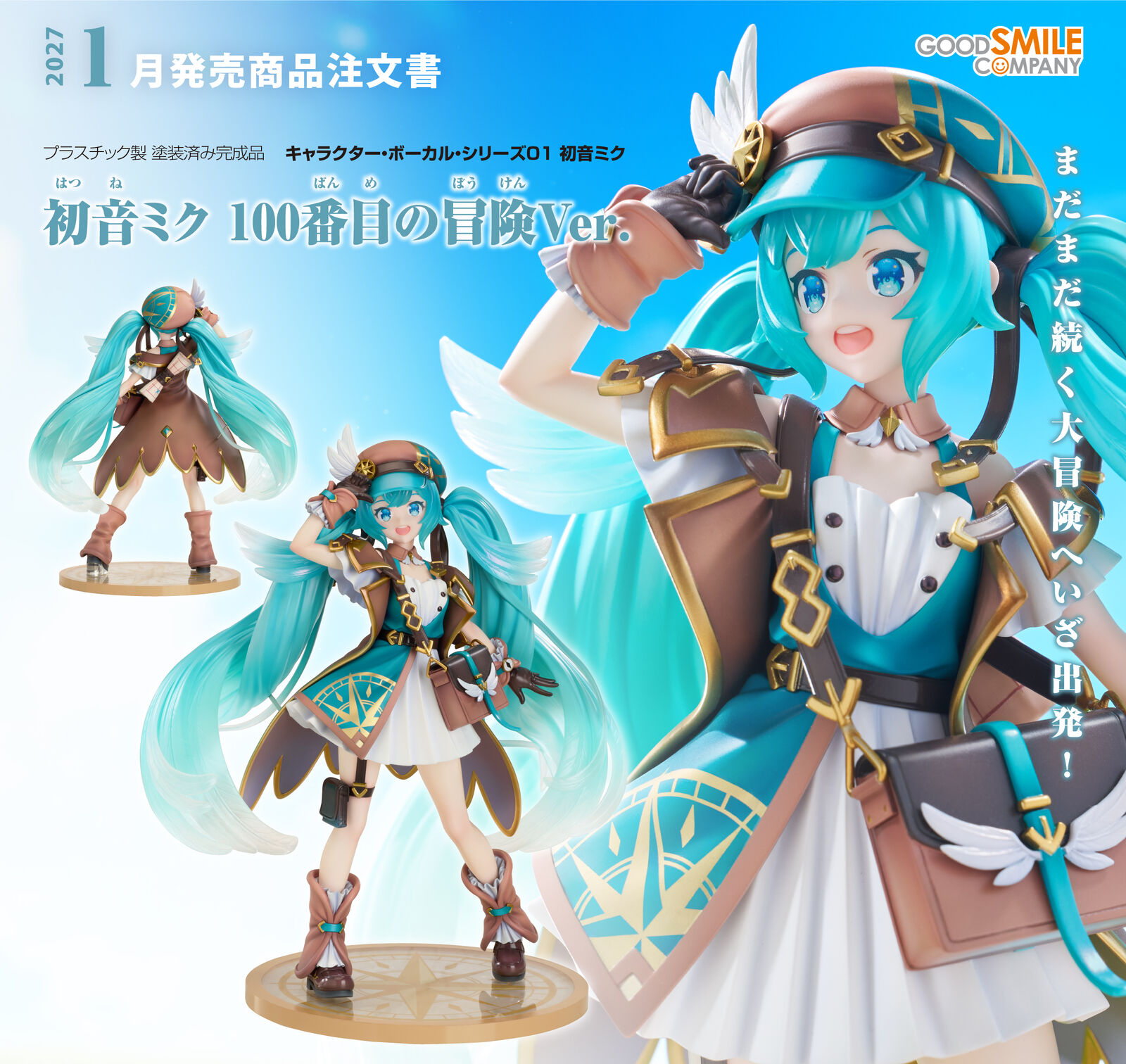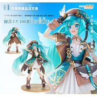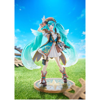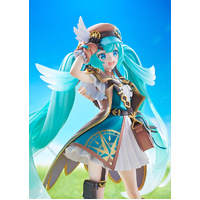 From "Character Vocal Series 01: Hatsune Miku" comes a 1/7 scale figure based on the 100th Nendoroid Hatsune Miku Commemorative Exhibition's key visual! This figure brings to life the fresh and vibrant artwork of illustrator KEI in all its glory! Her wing-like twintails are made with translucent parts for a beautiful and breezy look. Be sure to add this Miku figure to your collection and join her on a soaring adventure as she flies freely like a bird!