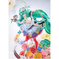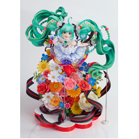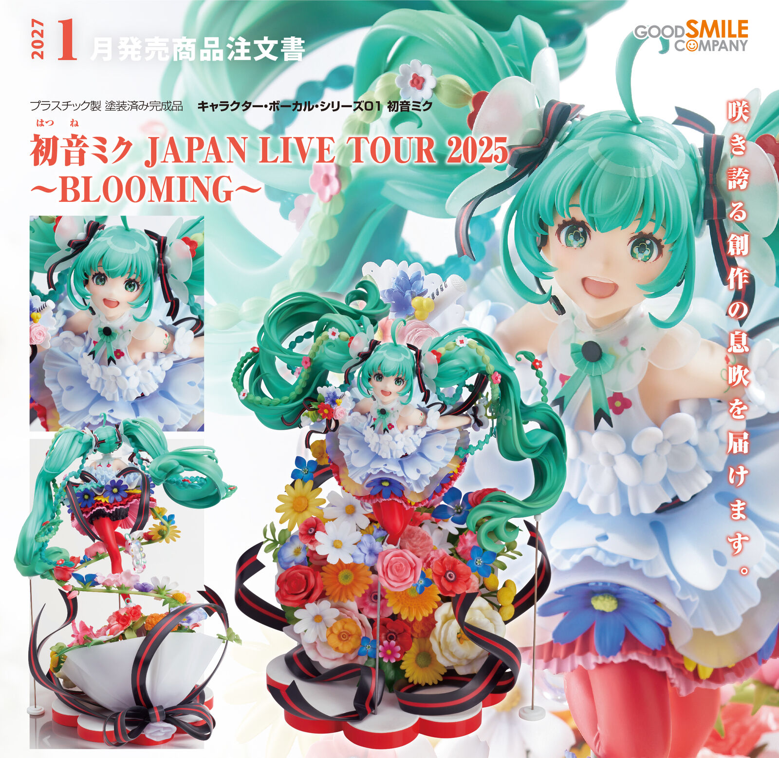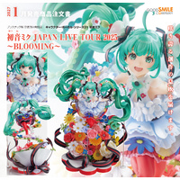 From "Character Vocal Series 01: Hatsune Miku" comes a 1/7 scale figure based on the main visual illustration from "Hatsune Miku JAPAN LIVE TOUR 2025 ~BLOOMING~"! This model beautifully captures the essence and mood of illustrator Mai Yoneyama’s vibrant artwork. The detailed sculpting of the flowers and Miku's pose as she appears to jump right out of a bouquet are truly a sight to behold! As the tour theme "BLOOMING" suggests, this Hatsune Miku figure blossoms with charm and is sure to brighten your collection like a radiant flower.