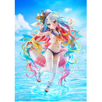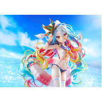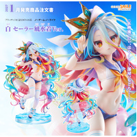 From "No Game No Life" comes a scale figure of Shiro in a sailor-style swimsuit! Each strand of hair has been meticulously crafted and painted with a delicate and vivid gradient of color to faithfully recreate the source illustration. Don't miss out on the design of Shiro's adorable swimsuit and the sculpting of her physique! The figure offers a very special glimpse of Shiro before she returns to her room. Be sure to add her to your collection!