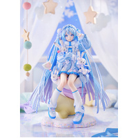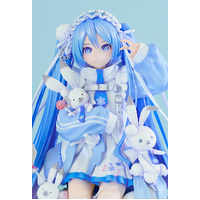 From "Character Vocal Series 01: Hatsune Miku" comes a 1/7 scale figure of Snow Miku based on her appearance from the Sky Town 10th anniversary illustration by iXima! Snow Miku has been carefully captured in figure form sitting atop a fluffy cushion, alongside Rabbit Yukine and other adorable accessories. Her snow globe-like eyes and delicately crafted pearlescent hair make for a figure that can be enjoyed from a variety of angles. Be sure to add this commemorative Snow Miku to your collection!
