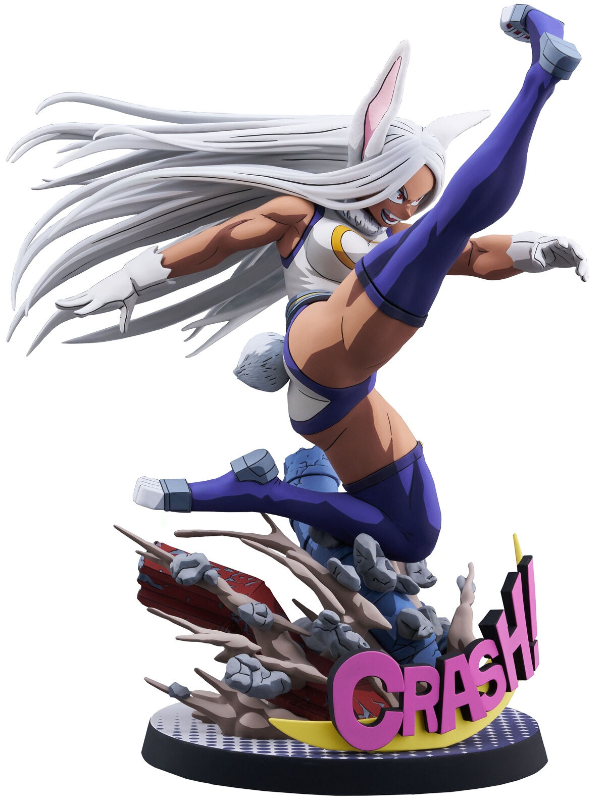 Her determined expression, muscular physique, and dynamic long white hair have all been carefully crafted. Also, pay attention to the sculpted base that brings out her charm and worldview. Enjoy having Mirko in your hands as she overwhelms her enemies (villains) with her incredible leg strength and jumping ability.