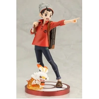 Victor and Scorbunny from "Pokemon Sword and Shield" are joining Kotobukiya's "ARTFX J" figure lineup! This figure is based on an original illustration by Ariga Hitoshi; Victor points at the vast scenery, and you get the impression that a great adventure is about to begin! The texture of his leather backpack, the checked pattern of the shirttail that hangs out beneath his red overshirt, and the distressed texture of his jeans are all carefully detailed. Scorbunny is seen in an energetic sprint, ready to take on any opponent! Victor's base looks like a Poke Ball, and Scorbunny is not attached to the base so he can be displayed anywhere. Some minor assembly is required. Order them for your own collection today!