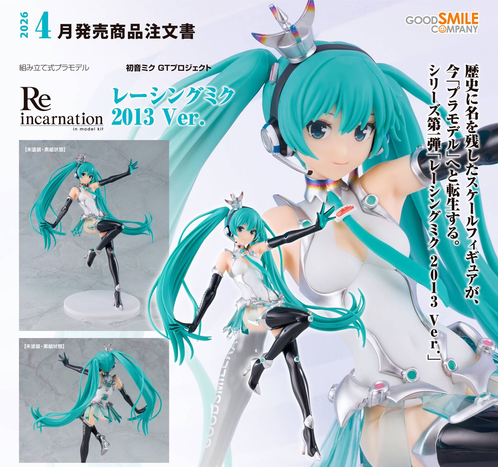 The scale figures that made history are now back as plastic models. The first installment features Racing Miku 2013 Ver.