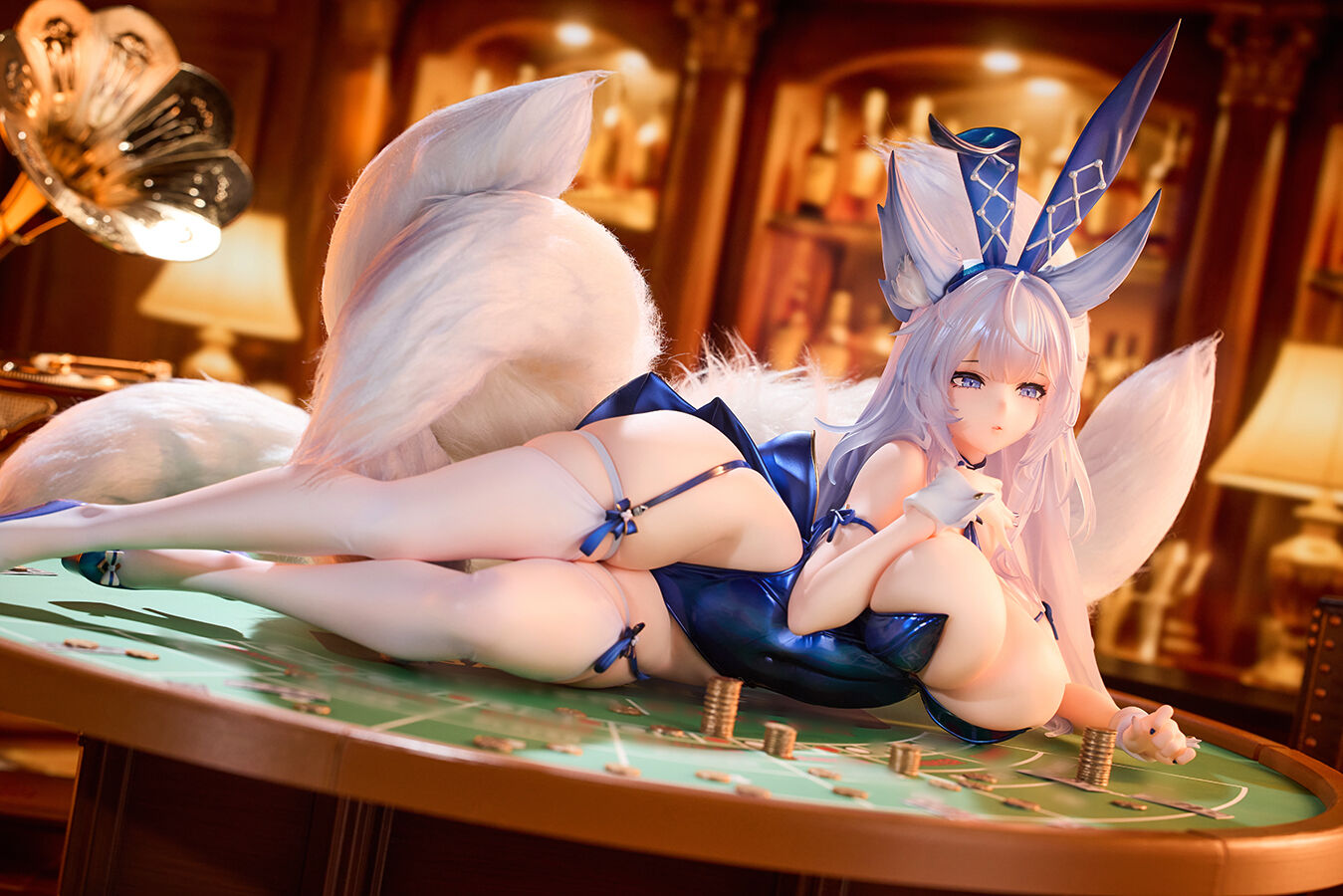 Shinano from the hugely popular game "Azur Lane" gets a new figure from Alpha Max, inspired by her "Visions of Fantasy" illustration! She's been brought to life in a big 1/4-scale, wearing a captivating bunny outfit in a lustrous deep blue color. The snug bunny suit showcases her voluptuous figure, and her tails are finished with a soft, furry material! She'll come with a soft and fluffy boa fabric base to recline on. She'll grab all the attention when you put her on display in your collection -- order her today!