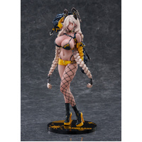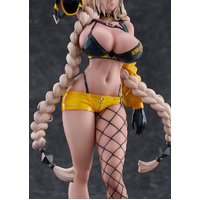 With her full lips parted slightly, her amber eyes exude a languid charm. In an instant, you'll be captivated. Her vivid yellow enamel outfit captures a realistic, glossy texture. Her shapely bust and slender waist make for bewitching curves. Her golden hair is lightly braided in a soft, flowing style, giving the impression of gentle movement. Her fishnet stockings have been meticulously molded, closely fitting the thighs. No compromises have been made. Be sure to add the bold and refined beauty of Owari to your collection.