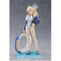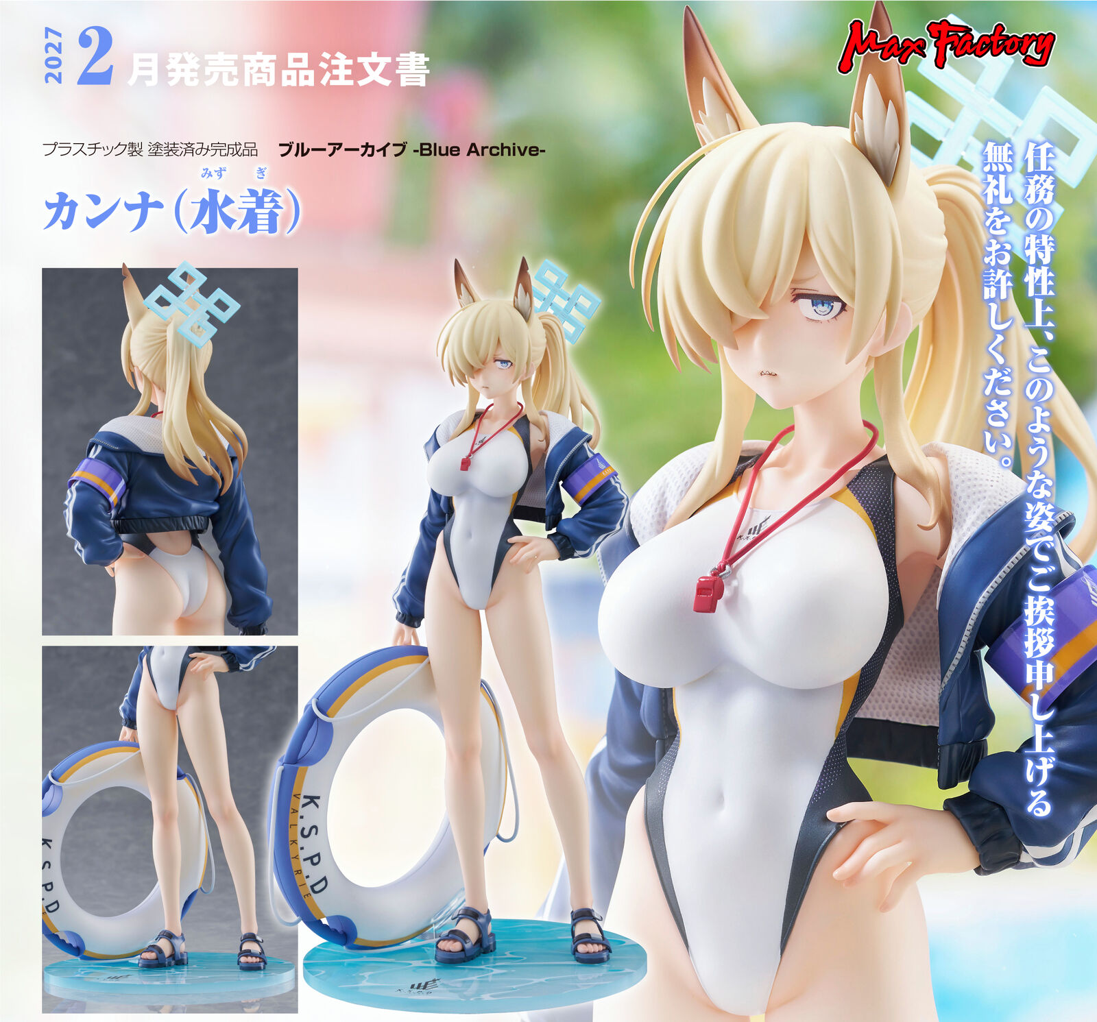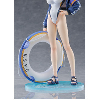 From the popular game "Blue Archive" comes a 1/7 scale figure of Kanna, the director of Valkyrie Police School's Public Peace Bureau, in her lifeguard outfit! The figure encapsulates Kanna's composed charm and striking looks hidden behind her usual stern expression. Her dignified standing pose from the original illustration has been faithfully recreated in figure form, along with details such as her swim ring, expression and lustrous hair. Special attention has also been paid to the texture of her exposed skin and swimsuit hugging her physique. The wrinkles and texture of the fabric add to the realism that is unique to figures. The stark contrast between Kanna's white athletic swimsuit and navy outerwear further highlight her charming looks. Be sure to add this rare rendition of Kanna to your collection!