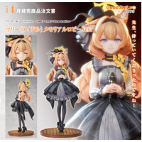 From the popular game "Blue Archive" comes a scale figure of Mari, a first-year member of Trinity General School's Sisterhood, in her pop idol outfit! The figure is based on the Memorial Lobby illustration of Mari dressed in her special outfit. Her flowing twintails and ears have been sculpted to the smallest details, and the elegance of her black and grey dress has been brought to life with skillful paintwork. The figure also comes with an interchangeable blushing face part, allowing you to display Mari with a flustered expression! Be sure to add the radiant Mari to your collection!