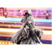 From the popular game "Blue Archive" comes a scale figure of Sakurako, a member of Trinity General School's Sisterhood, in her pop idol outfit! The figure features the member of the idol group "Antique Seraphim", performing on stage in a special outfit. Her chic monochrome outfit has been carefully recreated with attention to the soft texture of fabric, including the skirt’s gracefully flowing drapes. Decorations such as the frills and mini hat have also been meticulously sculpted down to the smallest details. Her gentle, intelligent charm is expressed through her bright smile, while her softly flowing long hair adds an extra touch of elegance. Be sure to enjoy this special moment with Sakurako as she shines on stage.