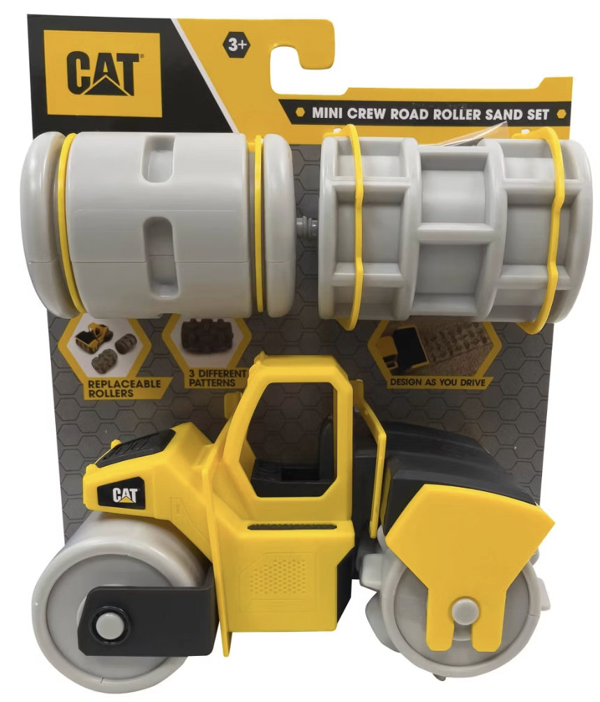 Get the construction fun rolling with the Cat Mini Crew Road Roller Sand Set! It includes a 7”/17.7 cm freewheeling vehicle built with removable sand roller wheels. Complete with 3 unique sand roller patterns to choose from, little ones can create designs as they drive for the ultimate sand play experience! Take this set to the beach, sandbox, park, or anywhere there’s sand! Real Cat machines are known for their high quality, and these toys are no different, built to withstand the elements and perfect for outdoor play. Appropriate for ages 3 years and up.