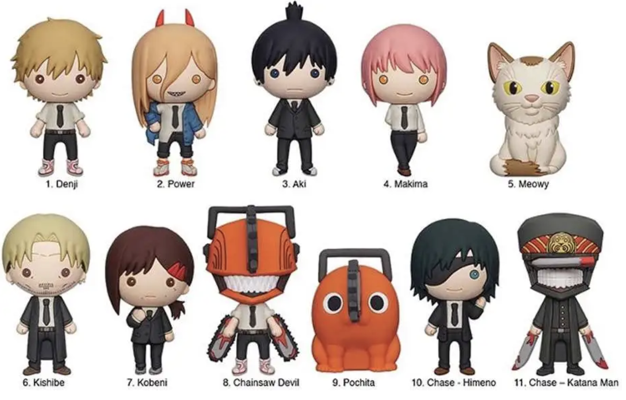 All your favorite Chainsaw Man characters are here for you to collect in 3D foam! Keep an eye out for the special rare chase figures! Each figure measures approximately 2-inches tall.