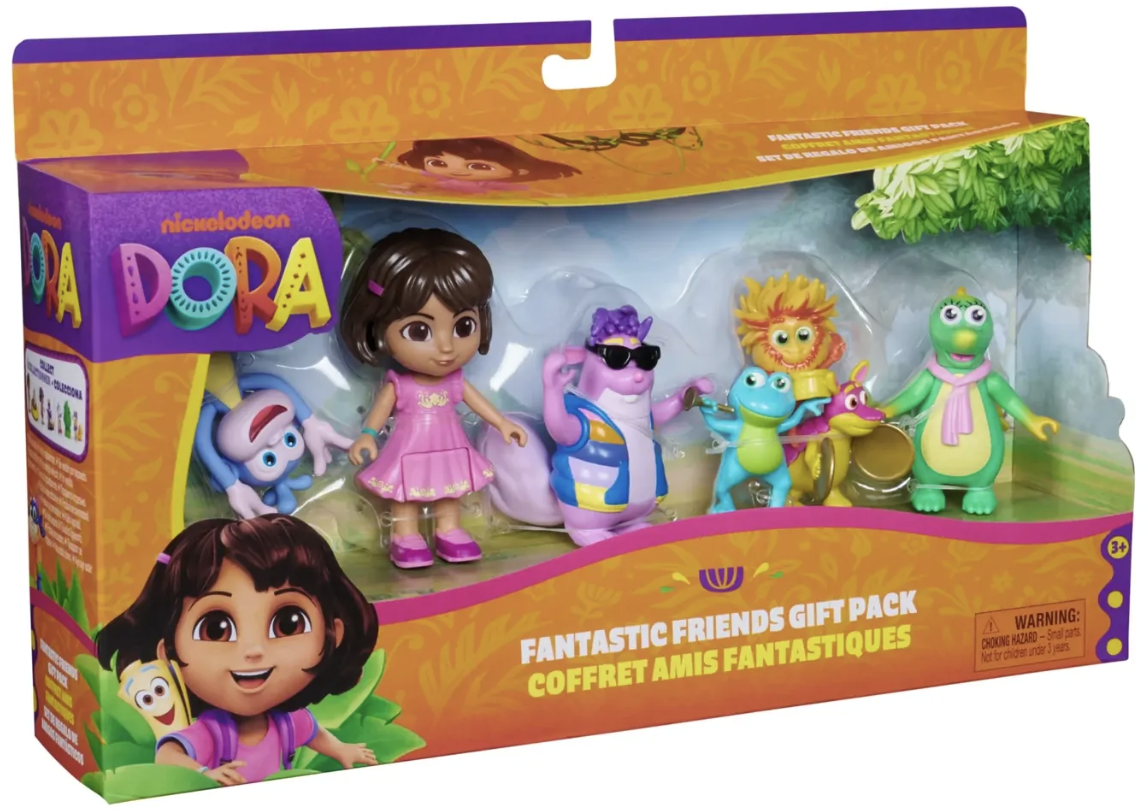 Create thrilling explorations with the Dora, Fantastic Friends Gift Pack! This amazing set of preschool action figures includes Dora, Boots, Tico, Isa, and the Fiesta Trio, each crafted with true-to-show design and styling and featuring movable parts, so kids can dive into imaginative storytelling and exciting pretend play. Dora stands at 3.5 inches, while her friends range from 2.5 to 2.75 inches tall, making them just right for little hands. Step into the world of Dora, with toddler toys that will make magical birthday, Christmas, & holiday gifts for girls & boys that love pretend play toys, like dolls & accessories, dollhouse furniture & muñecas para niñas. For even more thrilling adventures with Dora the explorer, build your very own “World of Dora” with the Rainforest Casita doll house—a casa de munecas that looks just like Dora’s house in the show, and gift packs with lovable action figures & must-have accessories, or interactive dolls, super-cute plushies & pretend play musical instruments that’ll have fans rocking out like the big kids