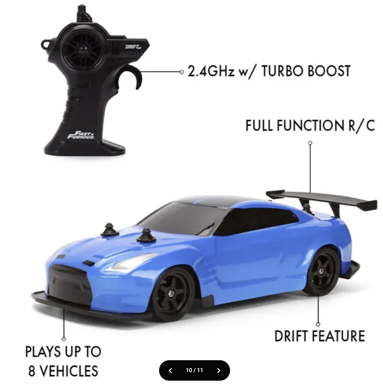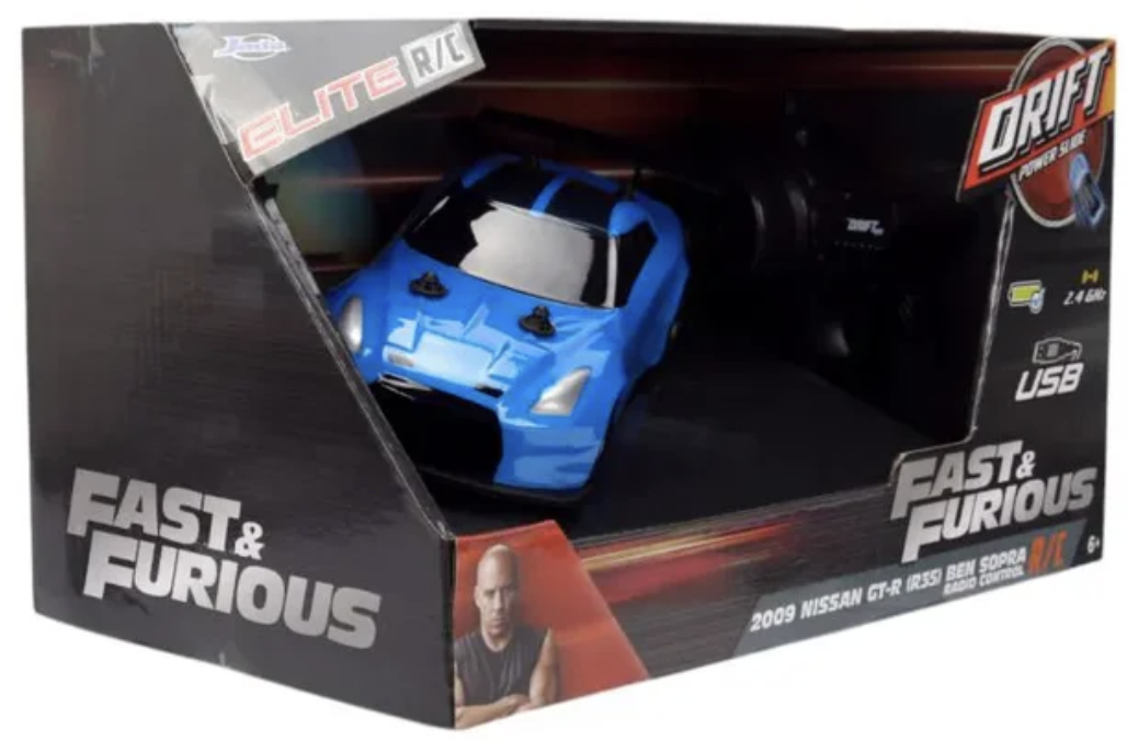 Rev up the excitement with the Jada Fast & Furious 2009 Nissan GT-R R35 Ben Sopra Drift RC Car, a stunning 1:24 scale remote-controlled vehicle that captures the adrenaline and iconic style of the Fast & Furious franchise. Featuring a sleek blue finish and the legendary Ben Sopra body kit, this RC car is perfect for fans, collectors, and racing enthusiasts of all ages.