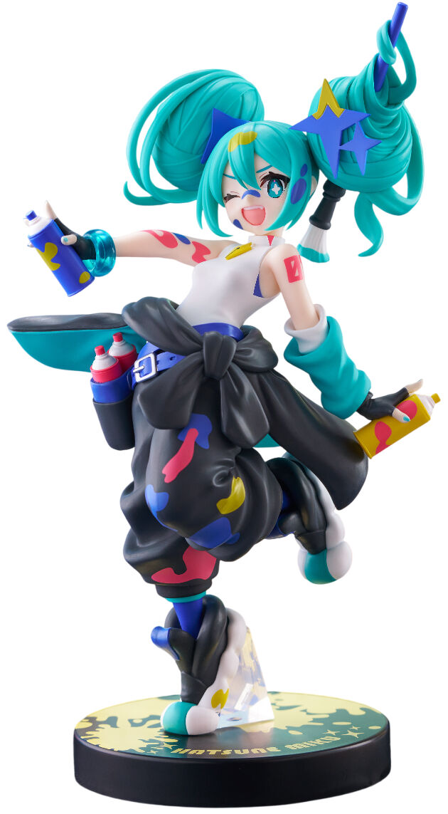 FuRyu invites you to add some color and chaos to your collection with their brand new Muchute line of figures and who better to start off the series than the international virtual popstar Hatsune Miku! Designed in a new cartoon-y style, Miku is depicted decked out in graffit gear and covered in paint as she finishes up her latest creation on a nearby wall. Winking at her friends for another job well done, the creative minds at FuRyu truly bring this vibrant figure to life with plenty of joy and excitement! Add some colorful vibes to your collection and order your figure today!