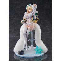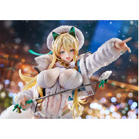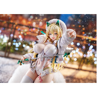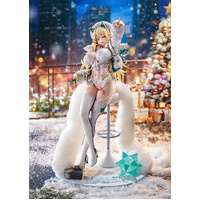 From the RPG "GODDESS OF VICTORY: NIKKE" comes a scale figure of Rupee, a member of Tetra's Talentum squad, dressed in a special snowy white Santa Claus outfit! The illustration of Rupee sitting in a chair with her selfie stick in hand has been faithfully captured in figure form. The figure shows off the bold design of her outfit and her curvaceous physique. From Rupee's lustrous outfit to the delicate patterns on her socks and accessories, every detail has been meticulously sculpted. The luxurious sheer white fur also adds a gorgeous holiday-themed touch. Be sure to add this figure of Rupee to your collection and make your holiday wishes come true!