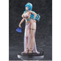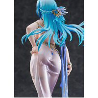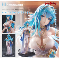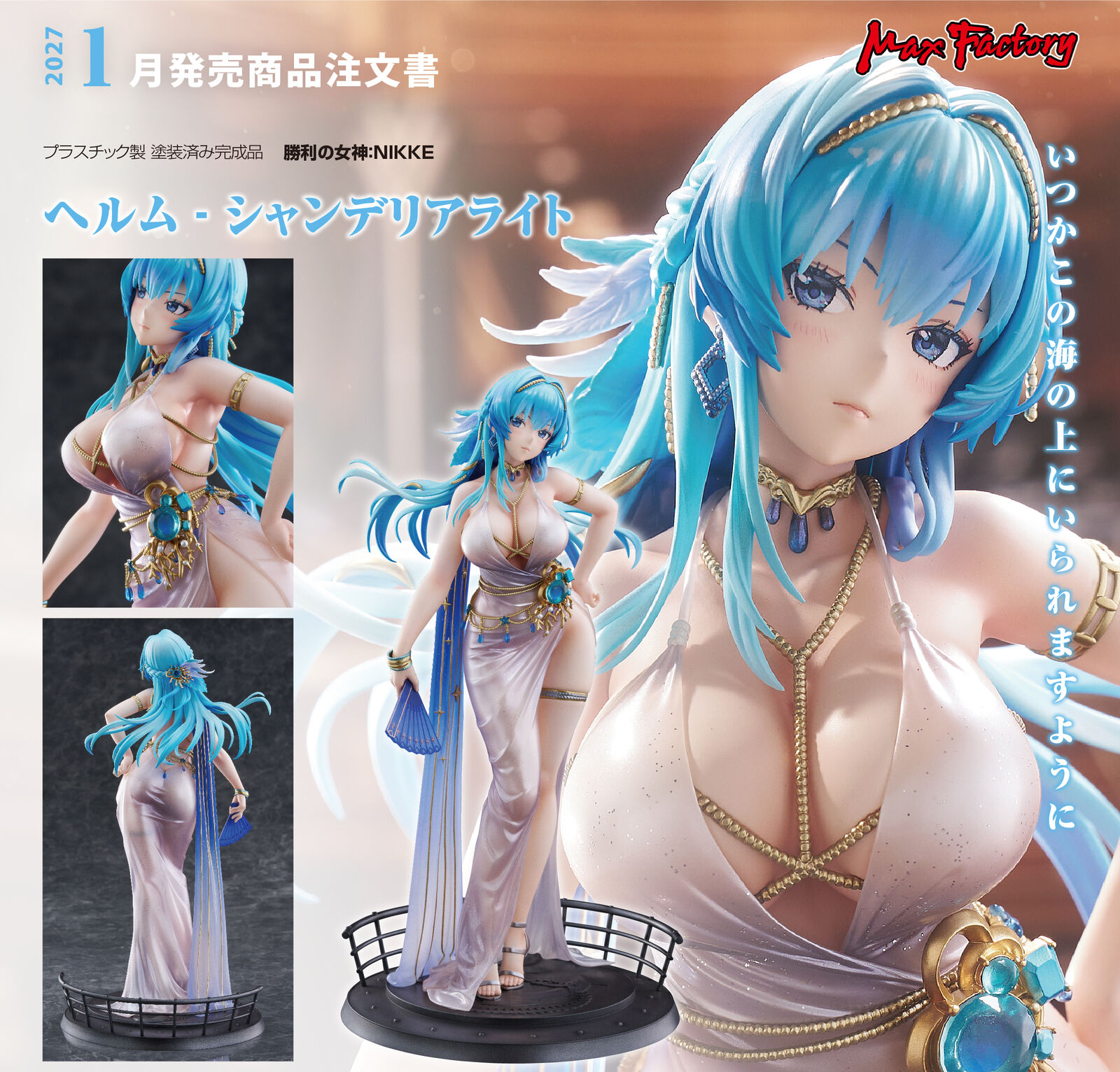 From the Epic Shooter RPG of Cruel Humanity "GODDESS OF VICTORY: NIKKE" comes a 1/7 scale figure of Helm, leader of the Aegis, wearing a dress! Helm's serene and dignified appearance has been faithfully captured in figure form. Her dazzling dress has been beautifully rendered with with pearlescent paint and glitter. Delicate gold accessories decorate the figure, further emphasizing its beauty. Helm’s dress features a graceful silhouette and deep cuts that accentuate her curves, while her legs, revealed through a high dress slit, add to the striking visual appeal. Be sure to add this special version of Helm to your collection, Commander!