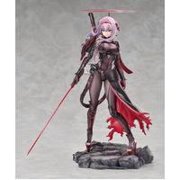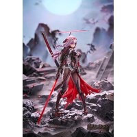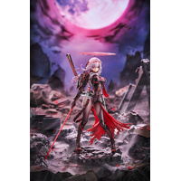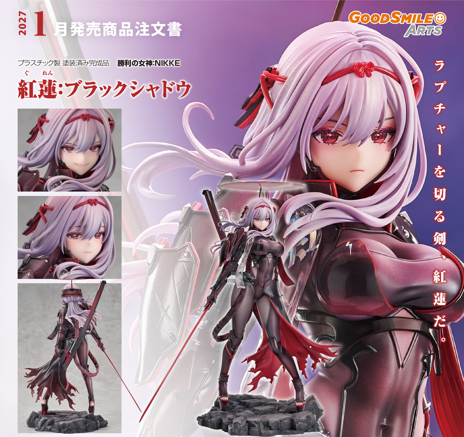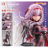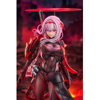 From the popular smartphone game "GODDESS OF VICTORY: NIKKE" comes a 1/7 scale figure of Scarlet: Black Shadow! Her black and red combat suit has been carefully painted to highlight the contrast between the armor’s texture and the fabric beneath, giving her a cold yet commanding presence. The flowing cape and carefully sculpted weapon accentuate her dignified, battle-ready stance. The armor markings and colors from the original illustration have been faithfully recreated with paintwork, including the subtle red lighting effects that appear to come from within. The figure includes two interchangeable face parts: a blushing expression and a crazed expression, allowing you to display her in a variety of captivating styles. Commander, be sure to add the valiant Scarlet: Black Shadow to your collection!