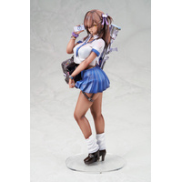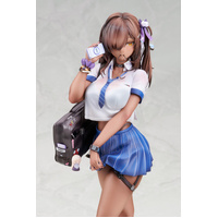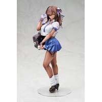 Naga from the Darjeerling Pearl Squad in the RPG "Goddess of Victory: Nikke" gets a beautiful new figure from Alter! Her uniform, with a striking contrast of white and blue against her deep skin tone, is perfectly sculpted to represent its soft wrinkling and the slight swaying motion of her skirt; her slender figure combines with her excellent proportions to create a powerful presence. The delicate gesture of her left hand holding the edge of her skirt, as well as the fact that she's casually holding a hair tie in her mouth, gives this figure a natural feel. The coloring of the figure is handled with great care too, including the slightly translucent effect of her clothing. Her various accessories and her shotgun are also precisely reproduced. An interchangeable face means she can be displayed with a slightly shy smile, and her base is included too. Order her for your own collection today!