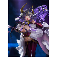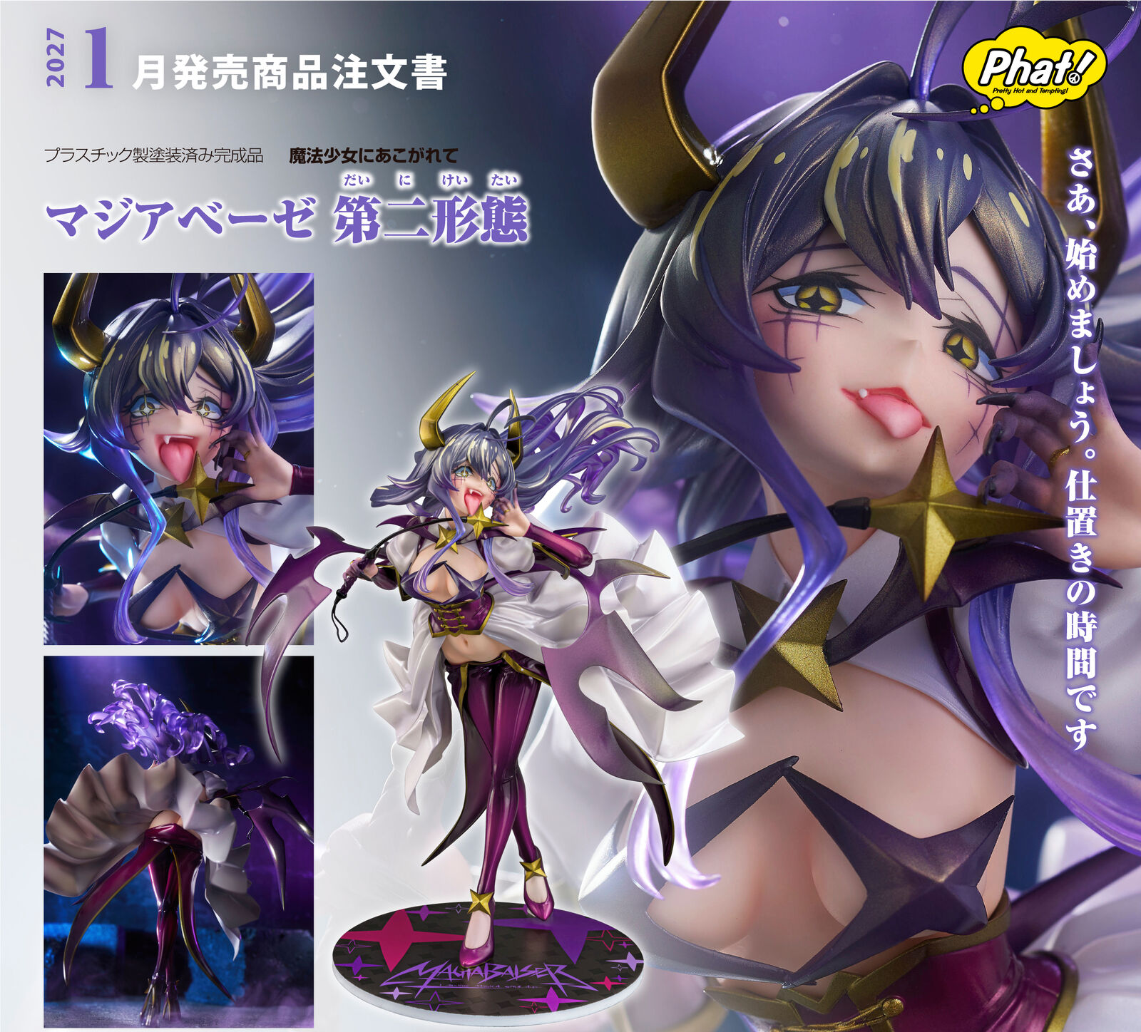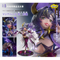 From the TV anime "Gushing Over Magical Girls", Magia Baiser has been brought to life as a scale figure. She is sculpted in her Second Form, which manifested during her battle with Lord Enorme. Her expression—featuring a boldly extended tongue and an air of sadistic intimidation—has been realized through daring, fetishistic sculpting and paintwork.