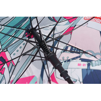 From "Hatsune Miku GT Project" comes a long umbrella! The outside of the umbrella features a special coating that reacts to water and changes color, while the underside features the Racing Miku 2025 main visual. Miku will be watching over you even on rainy days!