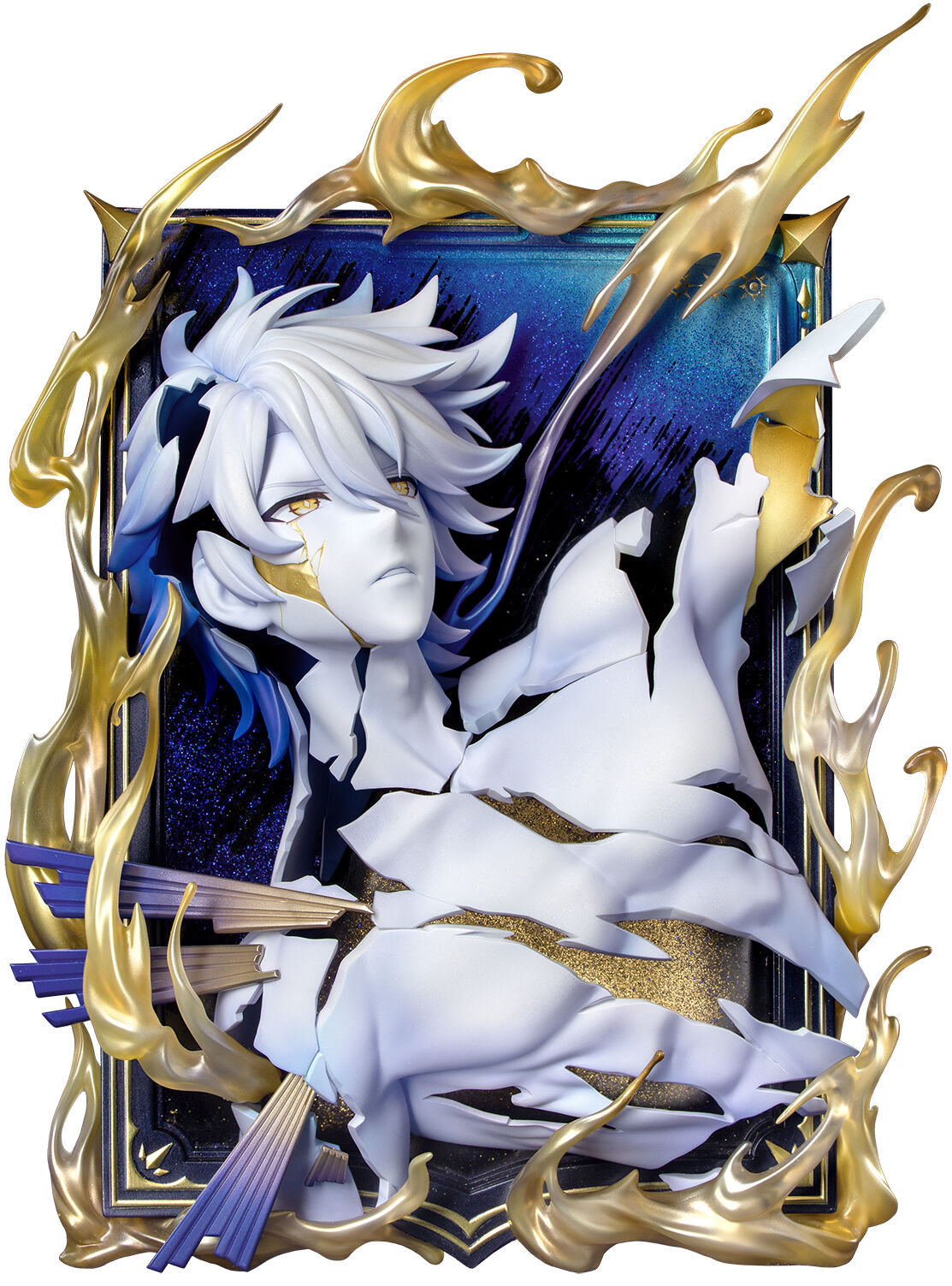 From the game "Honkai: Star Rail," the newest addition to the Diorama series — "Phainon: Thus Burns the Dawn Ver." is here! The back panel and select parts of the figure feature a multicolored glitter material with flowing sand effects, and a multi-layered relief technique that creates a three-dimensional perspective—like the solar corona glimpsed only in the deepest darkness. It can be displayed with its stand, or detached and hung on the wall.