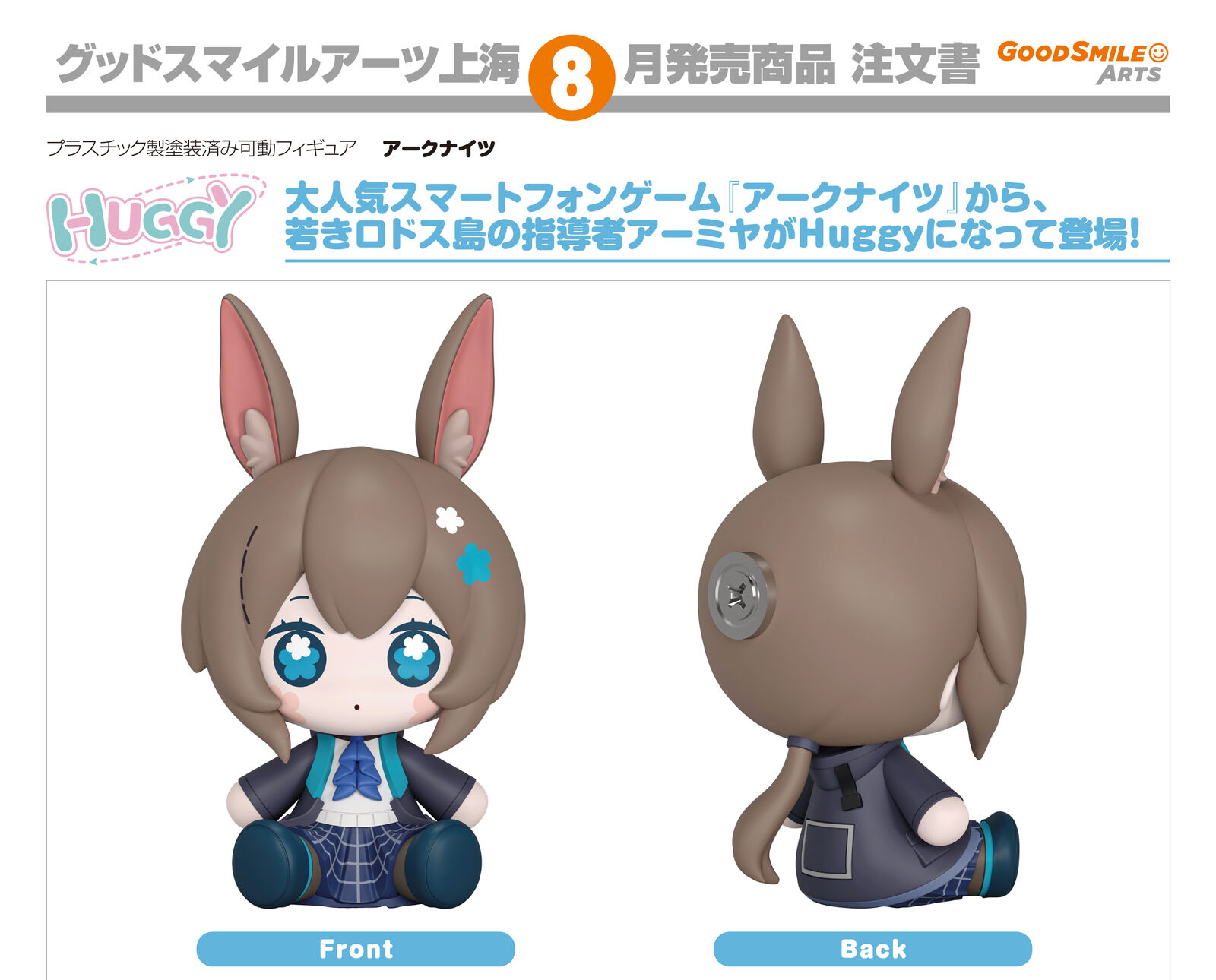 From the popular smartphone game "Arknights" comes a Huggy Good Smile figure of the young leader of Rhodes Island, Amiya!