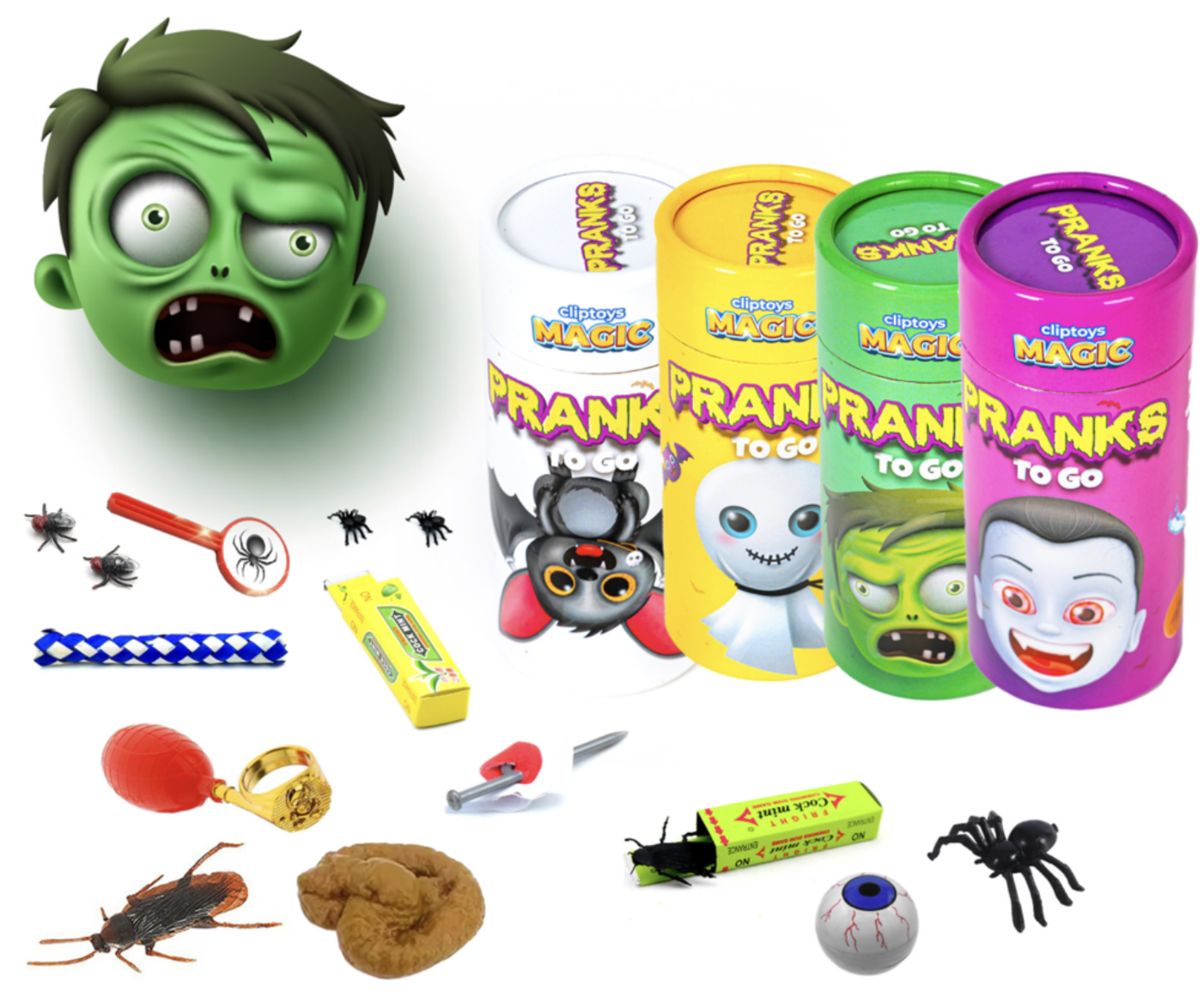 After some classic creepy fun? The Green Pranks To Go set delivers three hilarious surprises — the Snappy Cockroach Gum that bites back, a realistic Floating Eyeball and a freaky Fake Spider. They’re small enough to carry but big enough for huge laughs!
