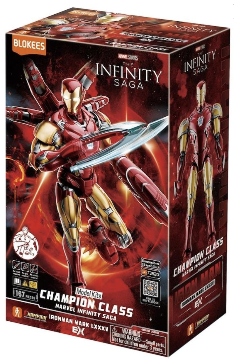 This premium 13cm figure features numerous articulation points of the full-body and a snap-off panel design requiring no tools, paint, glue, or cutters. Sprue and block parts create a unique assembling experience, faithfully reproducing the look of Iron Man Mark LXXXV’s battle suit.