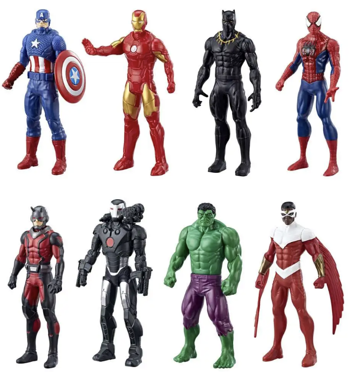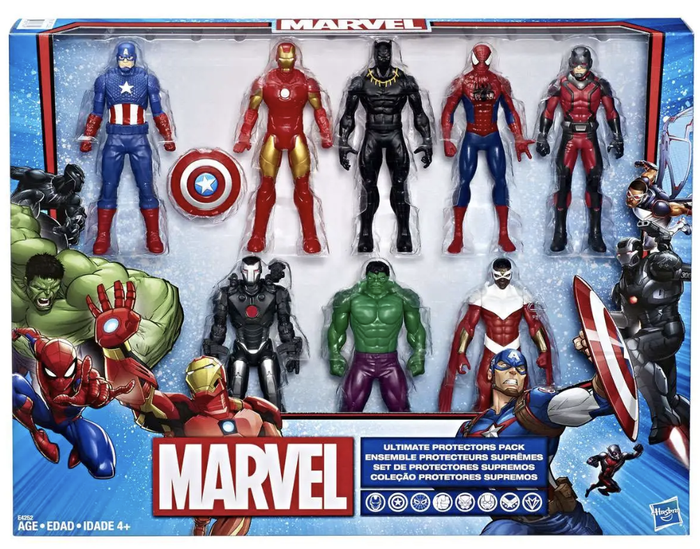 Marvel Super Heroes are always ready for action! From the gamma-powered Hulk to the high-soaring Falcon, these heroes will defend justice and the world! Imagine the action with this pack of 8 Marvel figures, including Hulk, Iron Man, Ant-Man, Black Panther, Captain America, Spider-Man, Marvel's War Machine, and Marvel's Falcon. Imagine these Super Heroes teaming up to protect the world from evil!