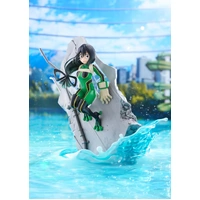 Taito is thrilled to present a new figure line that really brings your favorite anime figures to life with dynamic backdrops: the Dressta line! First up in this series is the Frog Hero Tsuyu Asui from the smash hit anime series My Hero Academia! Dressed in her trademark green hero outfit, she sticks to the side of some rubble that is submerged in water as she works to save civilians from a villain's attack. Join in the rescue effort by ordering your figure today!