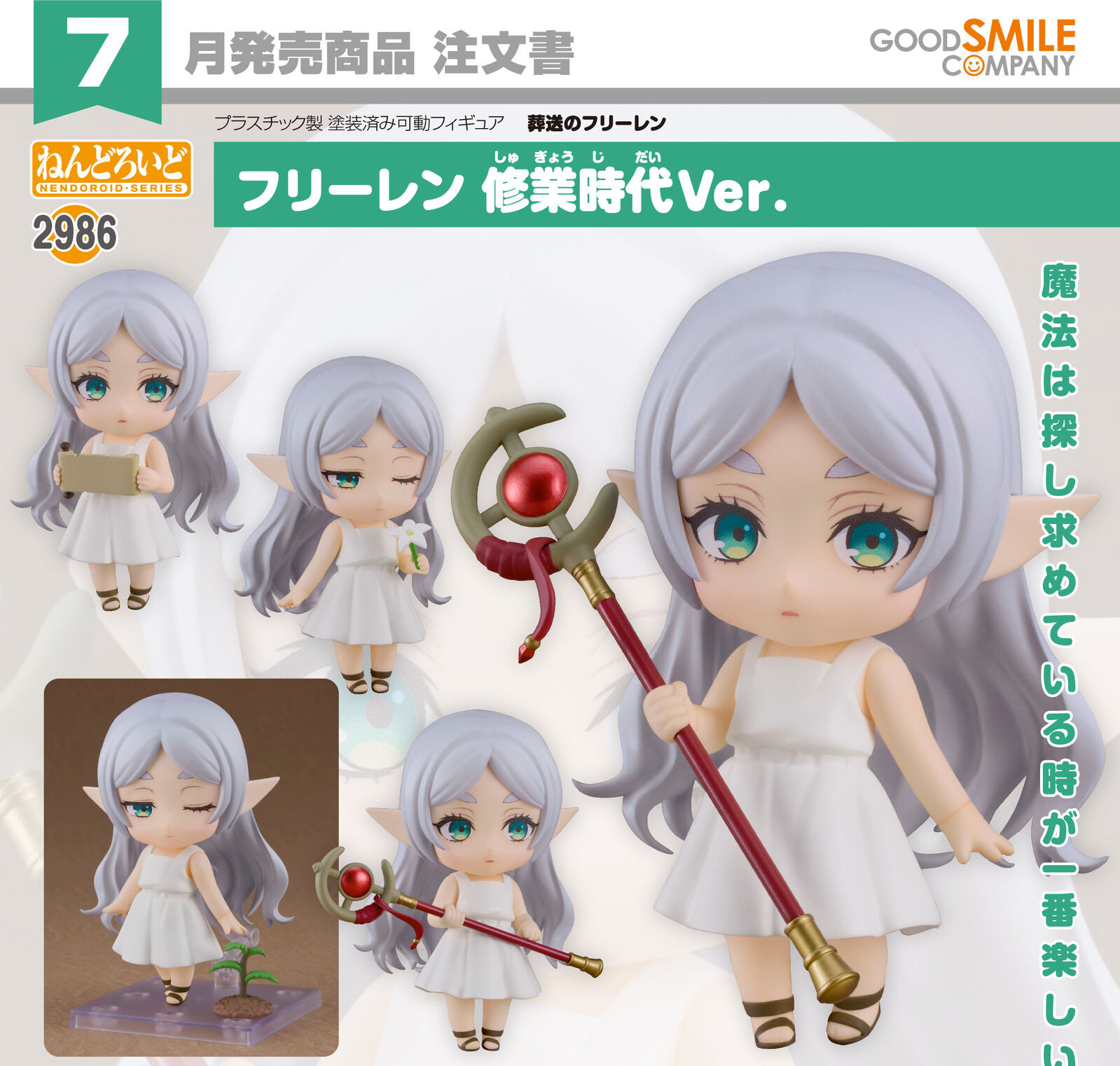 From the anime "Frieren: Beyond Journey's End" comes a Nendoroid of Frieren based on her apprenticeship era appearance!