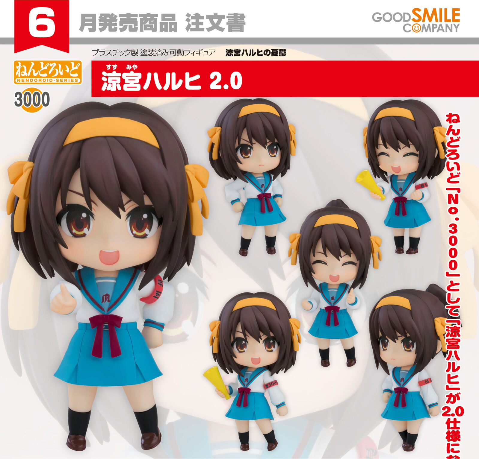 Haruhi Suzumiya joins the Nendoroid 2.0 series as Nendoroid No. 3000!