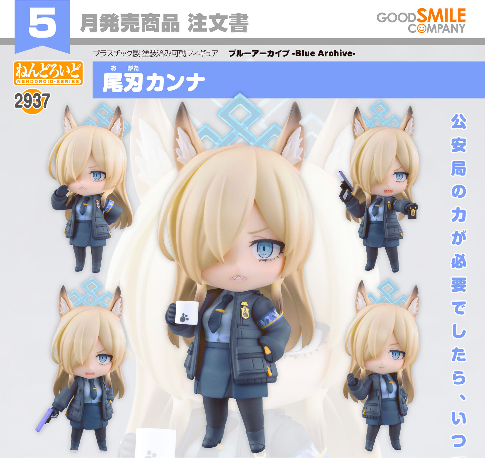 From the popular game "Blue Archive" comes a Nendoroid of Kanna Ogata, the director of the Public Peace Bureau studying at Valkyrie Police School!