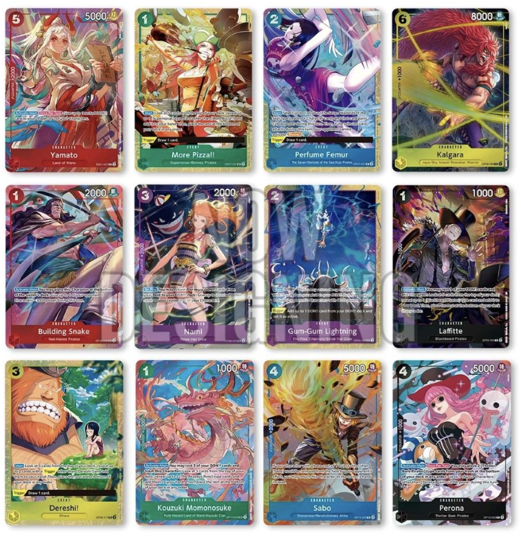 Enjoy the ONE PIECE CARD GAME even more by using these cards with new illustrations! The cards in this product are different versions of previously released cards featuring alternate illustrations.