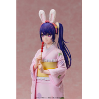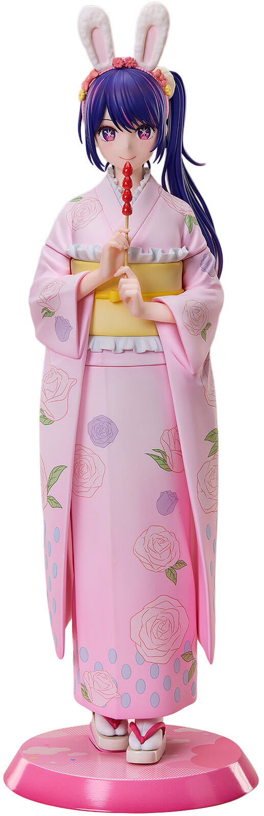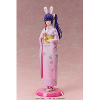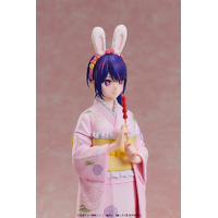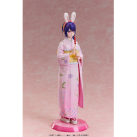 From the TV anime "[Oshi no Ko]," the unwavering center, Ai, is now a 1/7 scale figure in a kimono based on a newly drawn illustration to commemorate the New Year. Her smiling face, holding a strawberry candy, is incredibly cute. The kimono features a delicate floral pattern, and the rabbit ear hair ornament and the rabbit tail at her waist are also adorably rendered. Please add this cute kimono-clad Ai to your collection.