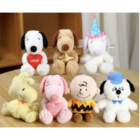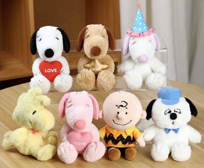Each blind box contains a surprise plush keychain featuring one of 6 iconic Peanuts characters - plus a chance to find 1 ultra-cute secret style! From Snoopy with his signature red heart to Woodstock, Charlie Brown, and more, these collectible plushies are crafted from soft-touch fabric with charming embroidered details.