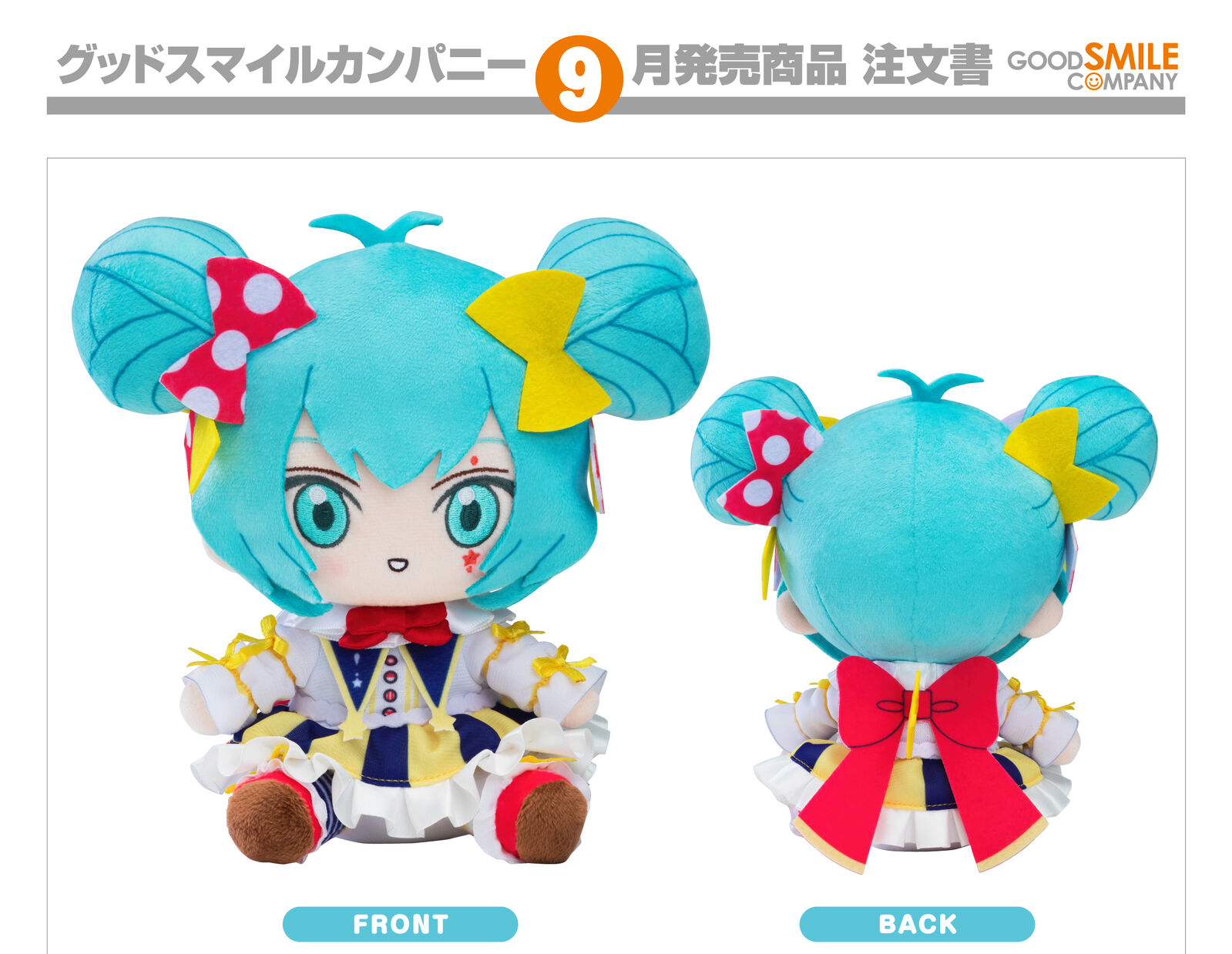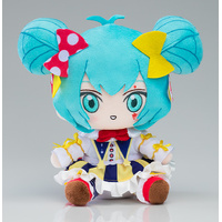 Presenting a plushie of Hatsune Miku based on her MIKU EXPO 2023 VR -Costume Contest Grand Prize Design- design! Her fluffy skirt, clown-style makeup and large ribbon have been faithfully captured in plushie form!