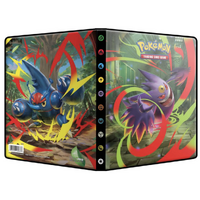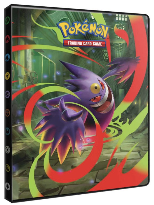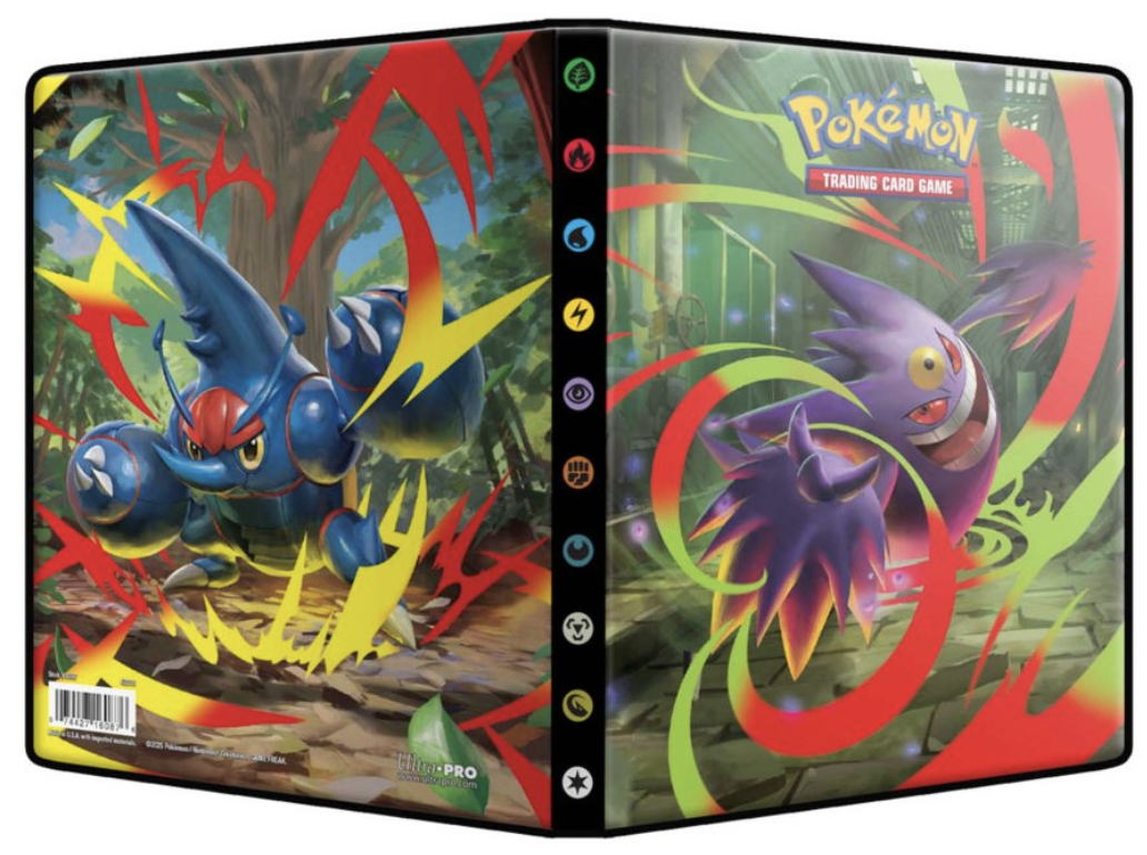 4-Pocket Portfolio for Pokémon TCG feature a vibrant, full-art cover of Mega Evolutions 2 Phantasmal Flames. Each portfolio stores and protects up to 40 standard size cards single-loaded and 80 cards double-loaded in archival-safe polypropylene pages. There are also pages in the center of the portfolio to store up to 4 oversized Pokémon cards. Made in California, U.S.A.
