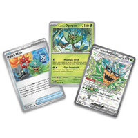 The Legendary Pokémon Ogerpon is an adorable yet fierce force to be reckoned with, and Terastallizing takes its strength to even greater heights! With this collection, you can team up with Teal Mask Ogerpon as a Tera Pokémon ex, joined by another version of Teal Mask Ogerpon and the Ogre’s Mask Trainer card as special foil cards. A card protector, set of card sleeves, and stack of booster packs make your new friendship with Ogerpon even more sweet!