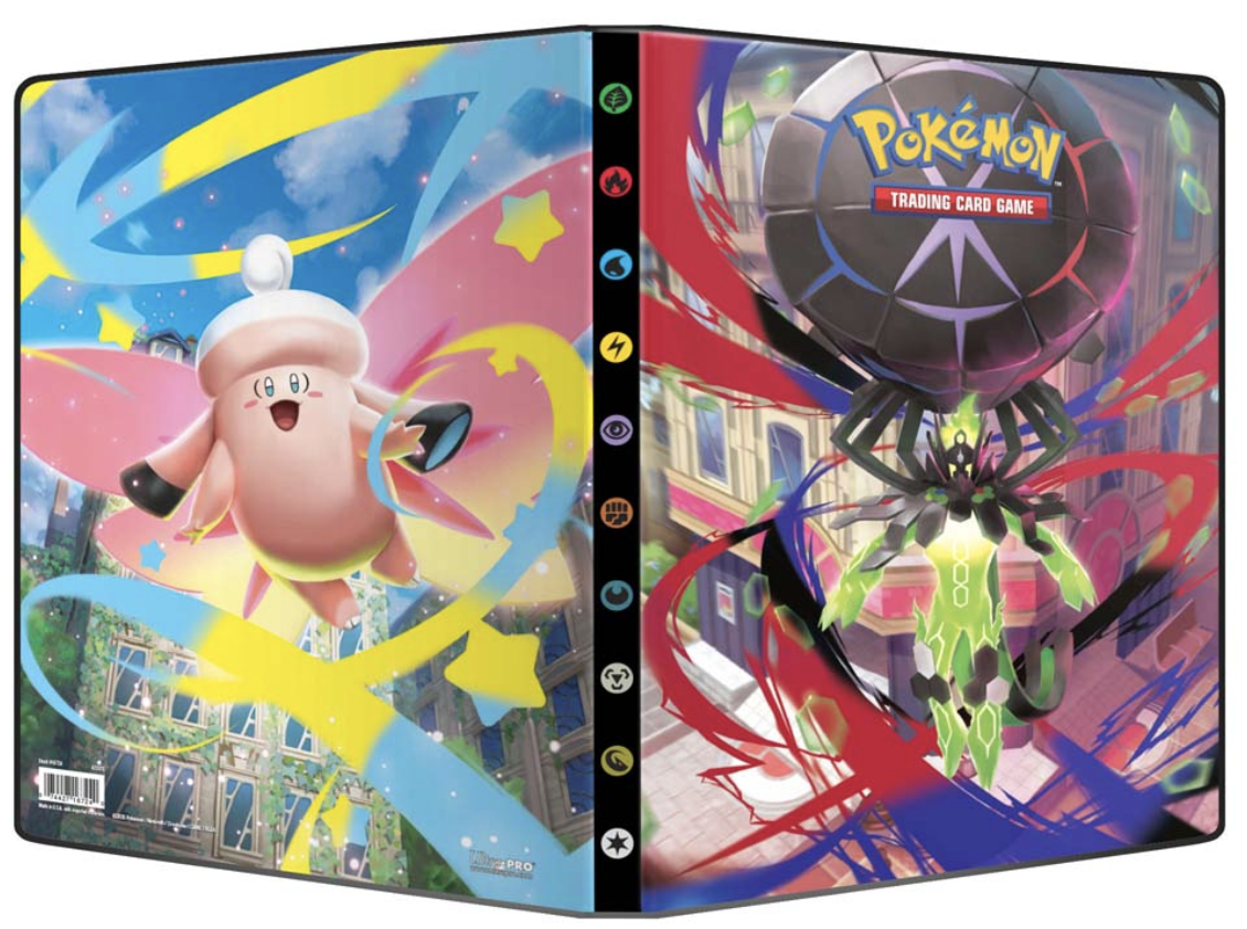 9-Pocket Portfolios for Pokémon feature a vibrant, full-art cover of Mega Zygarde and back cover of Mega Clefable. Each portfolio stores and protects up to 126 standard size cards single-loaded and 252 cards double-loaded in archival-safe pages. Made in California, U.S.A.