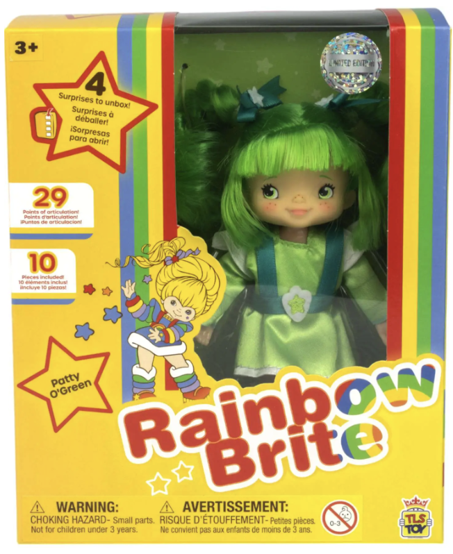 Patty O'Green is one of the most cherished characters from the original Rainbow Brite universe - and now she's back with a twist of mystery and magic! With blind-box surprises and classic Rainbow Land flair, this limited release is a must-have for any true collector. Available in limited quantities - grab yours before she disappears!
