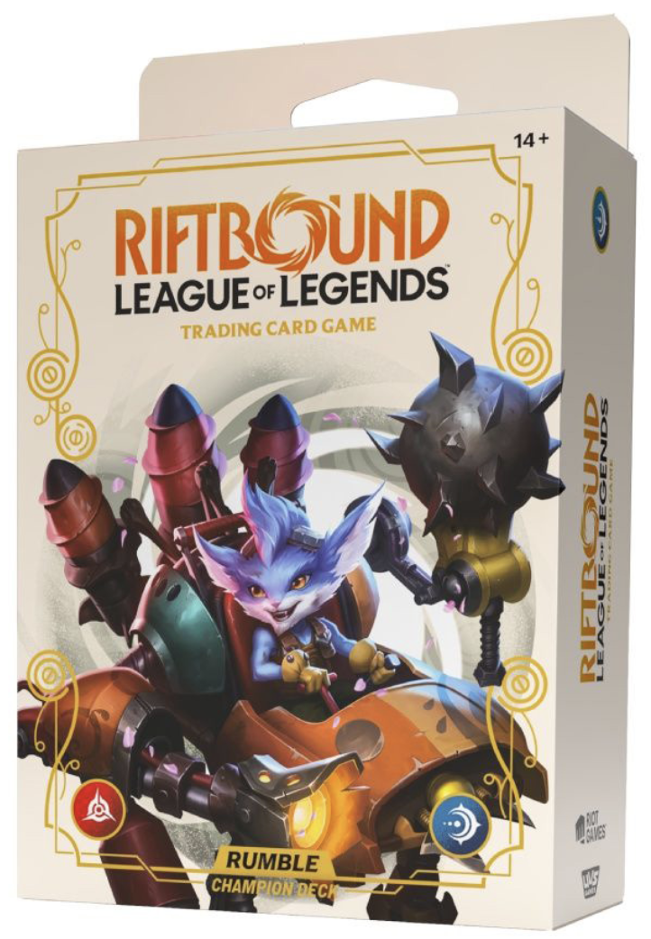 This preconstructed 56-card deck is built to overpower your opponents, packed with synergistic units and spells. Whether you're a new player ready to jump in or an engineering enthusiast looking for a fresh deck, Rumble is ready to... well, rumble, straight out of the box. Includes 1 Riftbound Spiritforged booster!
