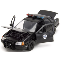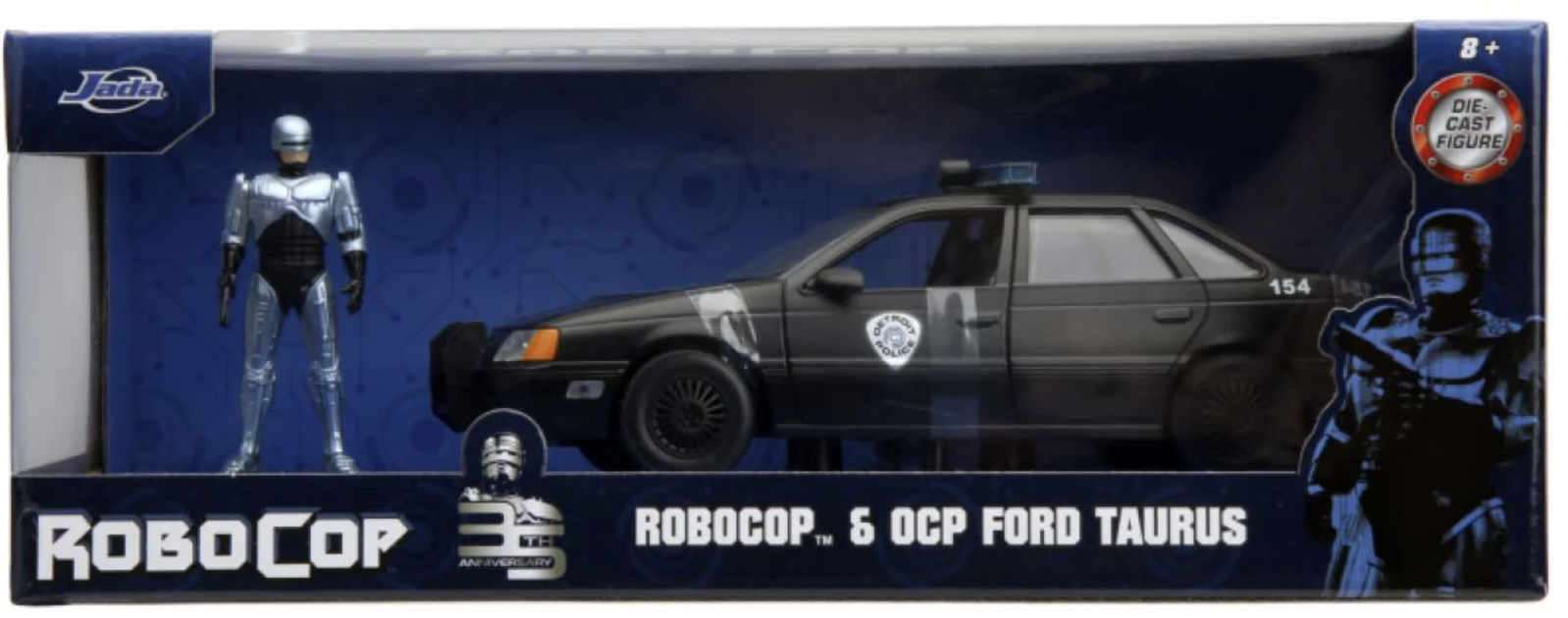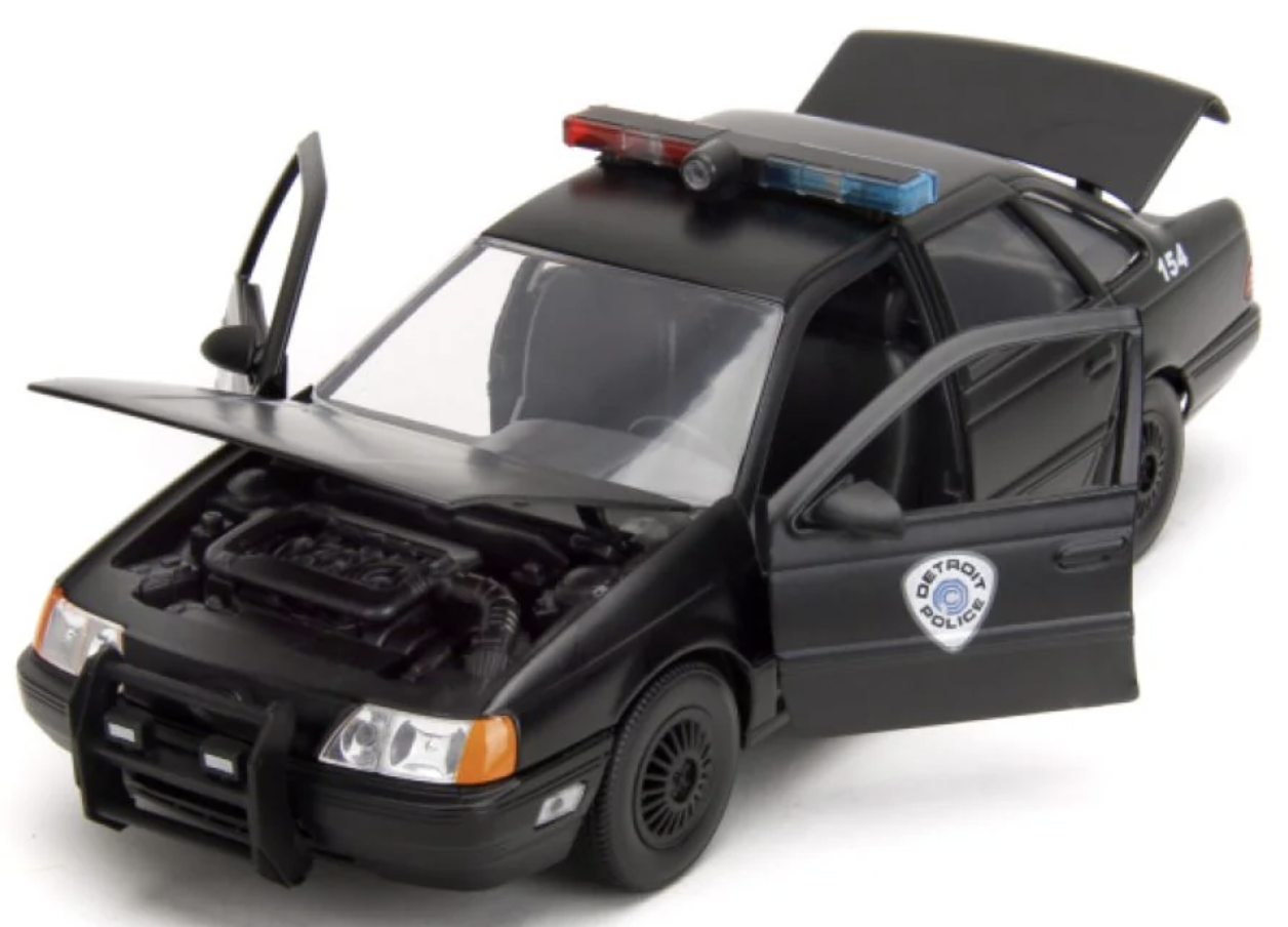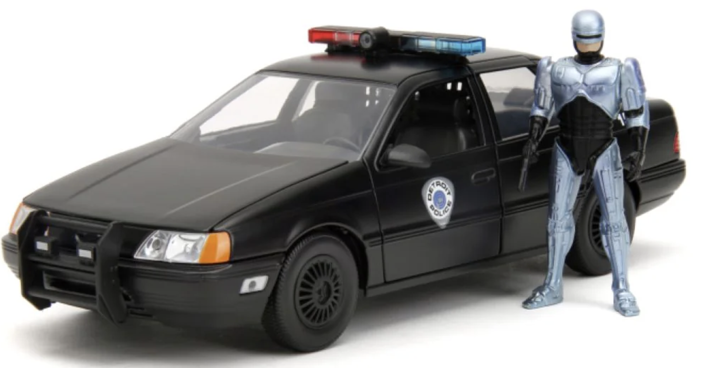 Celebrate 35 years of serving the public, protecting the innocent, and upholding the law with this authentically licensed Robocop 1:24 Die-Cast 1986 Chrome Ford Taurus. The beautifully sculpted Die-Cast features opening doors, hood, and trunk; and also comes with its very own Robocop figure.
