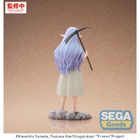 From the popular Frieren: Beyond Journey's End anime series, comes the High Premium Figure Frieren (I Am Forced to Slave Away in the Mines for Three Centuries) figure by Sega! Frieren stands around 7 inches in height and is displayed in a memorable pose and expression from the series. Don't miss out on adding this figure to your collection!