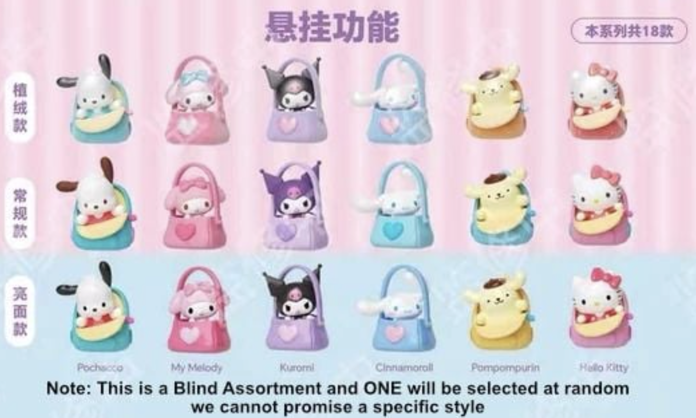 Moetch Beans are adorable mini figures that add charm to your home! Possible characters include Cinnamoroll, Kuromi, My Melody, Pochacco, Pompompurin, and Hello Kitty - with further variants featuring pearl finishes and flocked bags!