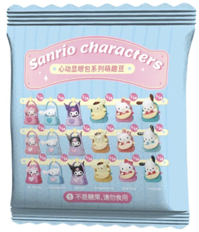 Pack your bags for an adventure with your favourite Sanrio characters with this assortment of figures in the Eye-Catching Bag Beans from Moetch