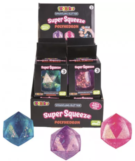Available in four captivating translucent colours - pink, purple, blue, and clear - each cube is a visual and sensory treat. Perfect for fidgeting, stress relief, or simply as a fun tactile toy, the Smoosho's Polyhedron Jelly Cube is sure to become a go-to in your collection of calming and engaging sensory items.