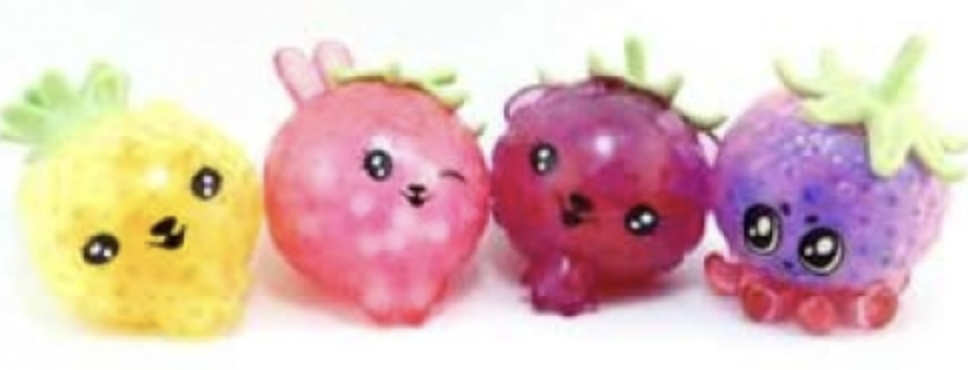 Super cute squishy fruit with beads inside. Excellent fidget toys and stress relievers! Squeeze these assorted fruits and watch the beads pop out and right back in when you release. This is great fun for children and releases stress at the same time. Assorted Fruits - Pineapple, Strawberry, Blueberry and Raspberry.